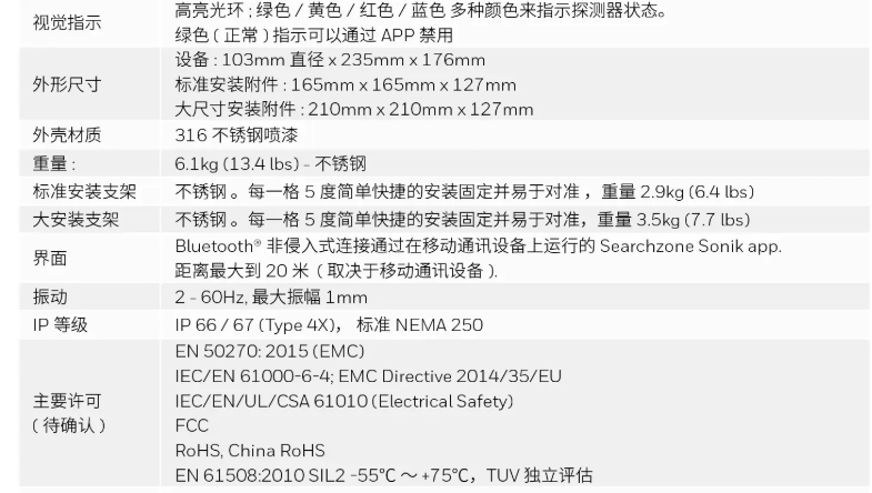 Searchzone Sonik超声波气体泄漏探测器技术参数: